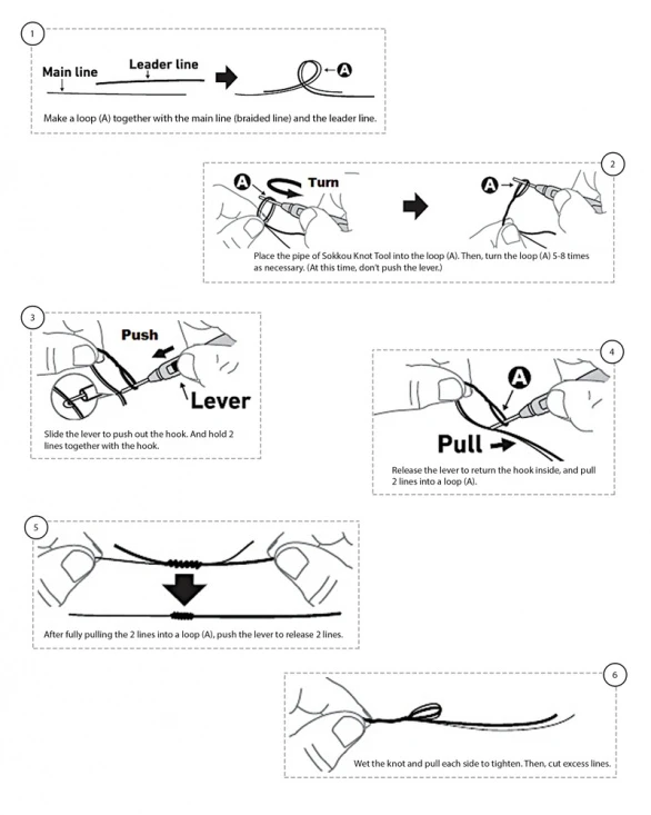 Mit dem SOKKOU-Knotenwerkzeug können Sie in Sekundenschnelle Knoten zwischen monofilem Vorfach und geflochtener Hauptschnur knüpfen. Mit etwas Erfahrung können Sie dieses Werkzeug auch mit geschlossenen Augen oder im Dunkeln benutzen.Bei kaltem Wetter oder Wind lässt sich die Verbindung zwischen Vorfach und geflochtener Hauptschnur meist nur mit einiger Erfahrung oder viel Aufwand knüpfen. Mit dem Sokkou-Knotenwerkzeug stellt diese Verbindung kein Problem mehr dar. Einsetzbar für Monovorfächer bis ca. 0,40mm und geflochtene Hauptschnüre bis ca. 0,25mm.Ein unverzichtbares Werkzeug, das in keiner Tacklebox unserer Teamangler fehlt. Einfach – schnell und leicht – Sokkou!Ausführliche Anleitung auf der Rückseite der Verpackung.
