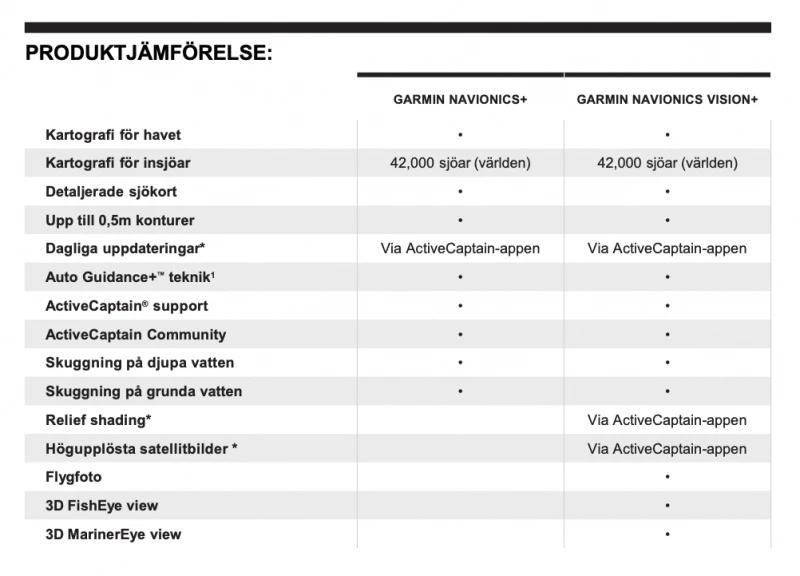 Die Karten haben schattierte tiefe Konturen, um bei der Navigation in seichten Gewässern zu helfen und die besten Angelplätze zu finden. Mit einer neuen fortschrittlichen Auto Guidance + Technologie für die beste Wahl der Führung auf dem Wasser und diese mit Hilfe der Routenlösung von Garmin und Navionc sind jetzt integriert. Zugriff auf tägliche Updates über die ActiveCaptain®-App für die neuesten Kartendaten. INTEGRIERTER INHALTIntegrierte Garmin- und Navionics-Inhalte für Ozeane und Seen – mit einer aktualisierten Farbpalette im Navionics-Stil, die außergewöhnliche Abdeckung, Klarheit und Details bietet.TÄGLICHE AKTUALISIERUNGENEinjähriges Abonnement mit täglichen Kartenaktualisierungen, heruntergeladen über die ActiveCaptain-App.AUTOMATISCHE GUIDANCE +Durch die Kombination der besten automatischen Routenfunktionen von Garmin und Navionic bietet Ihnen die integrierte Auto Guidance + -Technologie den einfachsten Weg von Anfang bis Ende, z. B. durch Kanäle, Buchten und mehr.SCHATTEN AUF KONTURENSchattierung mit Tiefenintervallen, wählen Sie zwischen 10 Farbtönen BIS ZU 0,5 mKONTURENVerbessert für Angeln und Navigation, die bis zu 0,5 m Konturen eine detailliertere Ansicht der Bodenstruktur bietet.SCHATTEN AUF DER NAVIGATIONSKARTEUm die Navigation zu erleichtern, können Sie die tiefen Konturen so einstellen, wie es Ihnen am besten passt.ACTIVECAPTAIN-GEMEINSCHAFTActiveCaptain Community, in der Sie Empfehlungen geben und Ratschläge von anderen Bootsbesitzern erhalten können, von Gasthäfen bis hin zu Marinas.