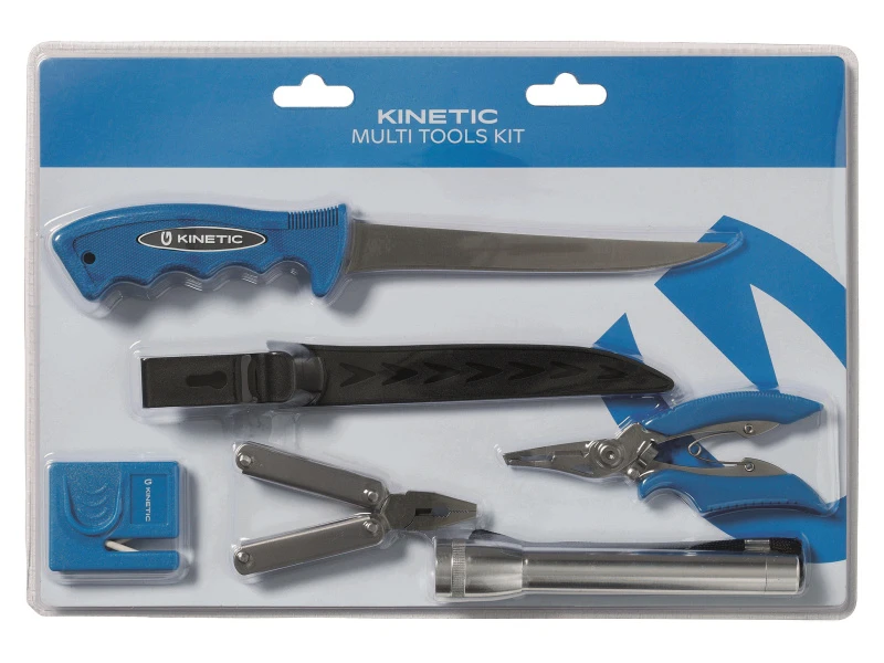 6-Zoll-Klinge aus rostfreiem StahlWeicher Griff und Öse zur Befestigung der SicherheitsschnurKlingenlänge 15,5 cmGesamtlänge 25 cmBeinhaltet Sprengring-Zange, Messerschärfer, Multitool, Taschenlampe