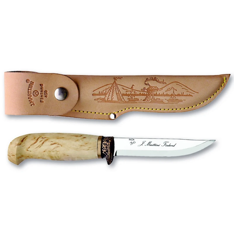 Marttiini Jagdmesser sind das Ergebnis langjähriger Arbeit erfahrener Jäger. Sie wurden ursprünglich entwickelt, um alle Bedürfnisse von Jägern zu erfüllen, sind aber genauso praktisch für andere Zwecke des Alltags.Klinge: EdelstahlGriff: BirkeScheide: Leder