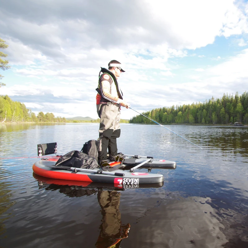 Gewinner der EFTTEX 2018 INNOVATION OF THE YEAR! Aufbauend auf dem Erfolg des Jungle Operator, ist der neueste 2018-19 Jungle Operator Flex eine dynamische Angelplattform, die neu gestaltet wurde, um das neueste Plug n’ go Zubehör zu integrieren. Mit einem Gewicht von 19,5 kg bietet dieses aufblasbare Wasserfahrzeug Anglern die Möglichkeit, mit Flossen, Rudern oder mit einem Trolling-Motor durch die Gewässer zu navigieren. Im aufgeblasenen Zustand unterstützt die stabile zentrale Plattform das Werfen im Sitzen oder Stehen.Unser exklusives Flex-System wurde entwickelt, um loses Tackle und Seitentaschen zu verankern.Plug n’ Go Ready bedeutet, dass bequeme Universalstecker vormontiert sind, um die neueste technische Ausrüstung effizient unterzubringen.Es ist leicht zu transportieren. Entleert, gefaltet und in einer speziellen Tragetasche aufbewahrt, die in die meisten Kofferräume passt, entfällt die Notwendigkeit eines Dachträgers oder Anhängers.• Länge: 200 cm• Breite: 140 cm• Anzahl der Luftkammern: 3• Gewicht: 17 kg• Max: 200 kg• Zusammensetzungen Fallstich: 15 cm / 2700 gr – m²• Polyester deniers: 1 100 D• Materialien: PVC-beschichtet• Stärke: 0,7mm / 0.276 inch• Max. Druck: 15 Psi / 1 Bar (Tropfenstich) 3,6 Psi / 0,25 Bar (PVC latéral)• Anzahl der Personen: 1• Max. Leistung: 55 LBS• Ohren: 2