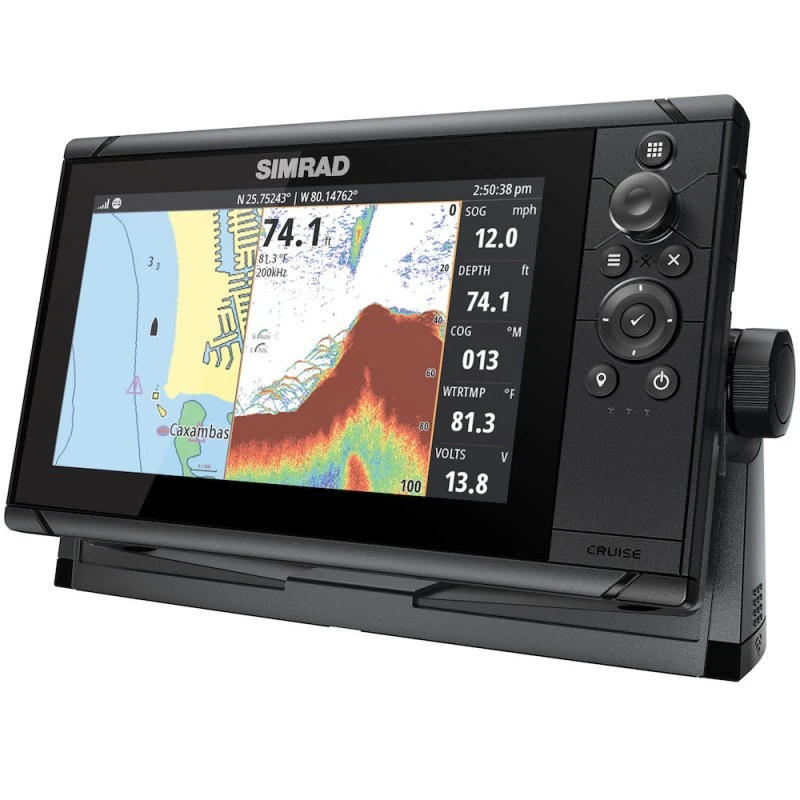 Der Simrad Cruise-9, ROW Base Chart, 83/200 XDCR ist der intuitivste und am einfachsten zu bedienende Kartenplotter auf dem Markt. Alles, was Sie für eine einfache und unkomplizierte GPS-Navigation benötigen, befindet sich im Lieferumfang – ein sonnenlichttaugliches Display, eine Halterung und ein Sonar-Schwinger. Simrad Cruise kann Karten, Navigation und Sonar in geteilter Bildschirmansicht oder separat im Vollbildmodus anzeigen. Drehregler und Tasten machen das Navigieren durch Menüs, das Erstellen von Routen und den Zugriff auf Temperatur-, Geschwindigkeits-, Tiefenmesswerte und Batteriespannung mühelos.HauptmerkmaleMit einfachen Menüs und benutzerfreundlichen Drehrad- und Tastatur-Bedienelementen sicher navigierenVorinstallierte weltweite BasiskarteUnterstützt eine große Auswahl an erweiterten Karten von C-MAP® und Navionics®Vorgewählte geteilte Bildschirme, um wichtige Daten im Blick zu behaltenAnzeige von Tiefe, Position, Batteriespannung und mehrCruiseSimrad Cruise ist der intuitivste, einfach zu bedienende Kartenplotter auf dem Markt. Alles, was Sie für eine einfache und unkomplizierte GPS-Navigation benötigen, ist im Lieferumfang enthalten: ein sonnenlichttaugliches Display, eine Halterung und ein Sonar-Schwinger. Simrad Cruise kann Karten, Navigation und Sonar in geteilter Bildschirmansicht oder separat im Vollbildmodus anzeigen. Mit dem Drehrad und den Tasten können Sie mühelos durch die Menüs navigieren, Routen erstellen und Temperatur, Geschwindigkeit, Tiefe und Batteriespannung abrufen.Fließende Navigation zwischen den MenüsSimrad Cruise verfügt über intuitive Menüs, so dass Sie schnell die benötigten Informationen finden, wenn Sie sie brauchen, und mit dem Drehrad und den Tasten können Sie mühelos von Bildschirm zu Bildschirm navigieren. Legen Sie die Bedienungsanleitung weg; mit Simrad Cruise schalten Sie einfach Ihr Display ein und los geht’s!Immer auf KursWissen Sie, wo Sie sind und wohin Sie gehen! Wählen Sie aus einer großen Auswahl an erweiterten Karten von C-MAP® und Navionics®, und genießen Sie erweiterte Funktionen wie C-MAP® Easy Routing für ein echtes Navigationserlebnis.Alles im BlickSehen Sie die Details, die Sie wollen, so wie Sie sie wollen! Simrad Cruise bietet sowohl eine Vollbild- als auch eine geteilte Bildschirmansicht, so dass Sie ganz einfach die Informationen anzeigen lassen können, die Sie benötigen. Zeichnen Sie Ihren Kurs? Wählen Sie die Vollbildansicht der Karten für eine maximale Sicht auf Ihre Umgebung. Sie sind sich nicht sicher, was sich unter Ihnen befindet? Wählen Sie die Vollbildansicht des Sonars für eine klare Sicht auf den Grund und eine automatische Tiefenverfolgung. Sie möchten alles sehen? Verwenden Sie die Split-Screen-Option für die perfekte Kombination aus Karten- und Sonardaten.Informiert bleibenSimrad Cruise gibt Ihnen Zugriff auf die Informationen, die Sie für eine sichere und angenehme Zeit auf dem Wasser benötigen. Tiefenmesswerte, Position, Batteriespannung und andere wichtige Bootsinformationen können auf dem Bildschirm angezeigt werden, um schnelles Nachschlagen und Situationsbewusstsein zu gewährleisten.Spezifikationen- Betriebstemperaturbereich: „-15°C bis +55°C (5° F bis 131° F)- SD-Kartenspeicher: 1 Micro-SD-Steckplatz, max. 32 GB, Formatierung nach NTFS- Versorgungsspannung: 10 – 17 V DC- Leistungsaufnahme max: 12,2 W- Abmessungen B x H x T184,5 mm x 142,3 x 117,9 mm (mit Halterung)- Garantiezeit: 2 Jahre- Empfohlene Absicherung: 3A- Betrachtungswinkel: 70&Grad; oben/unten, 70&Grad; links/rechts- Bildschirmhelligkeit: 800 nits- Bildschirmauflösung: 800×480- Montageart: Halterung oder Panel- Schnittstelle: Richtungs-Cursortaste und Drehregler- Sonar-Kompatibilität: Integriertes CHIRP. 8-Pin-Steckverbindung- GPS: Intern, 1Hz, WAAS, MSAS, EGNOS- Wasserdichtigkeit: IPX 6 und 7- N2K PGNs: N/A- Radarkompatibilität: N/A- Wetter: N/A- AIS: N/A- Multimedia: N/A- Autopilot: N/A- Digitale Umschaltung: N/A- Unterstützte NMEA 0183-Sätze: Nein- Ethernet-Anschlüsse: Keine- NMEA 2000 Konnektivität: Keine- PC Konnektivität: Keine- Video: Keine- Element-Konnektivität WiFi: Keine- Bluetooth: KeineWas ist im Lieferumfang enthalten?Cruise / Hook² 83/200 Skimmer-SchwingerCruise Corner Bezel, Chart Card SealNSS Evo3, Cruise & Zeus³ DrehknopfKardanische Halterung, NSS7 evo3, GO9, Cruise 9, Vulcan 9, Zeus³ 7HOOK² / Reveal & Cruise Stromkabel (5/7/9/12)